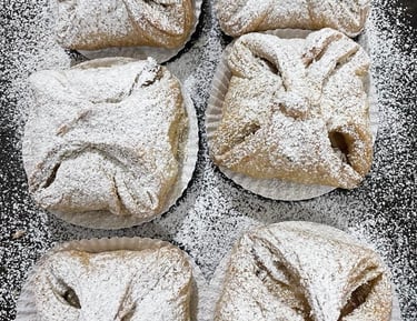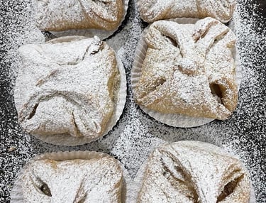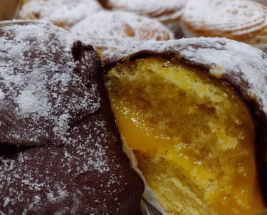 Folhado redondo com creme português, polvilhado com açúcar de confeiteiro e canela. Aroma e sabor inconfundíveis.